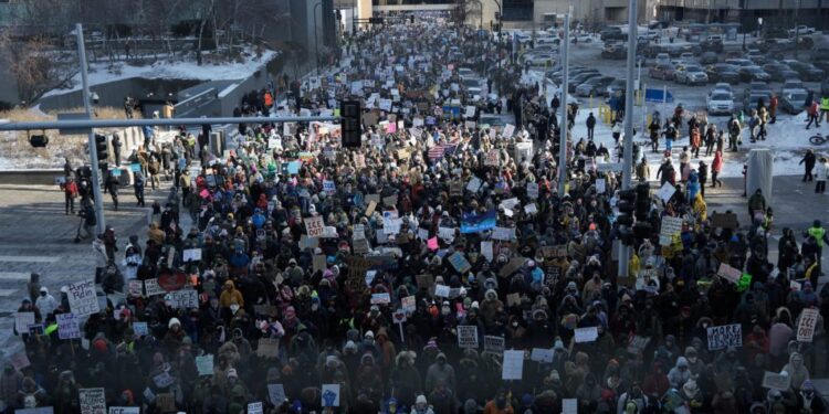 Thousands of people braved bone-chilling temperatures this afternoon for a rally in downtown Minneapolis, protesting what they call a siege of the Twin Cities by federal agents.