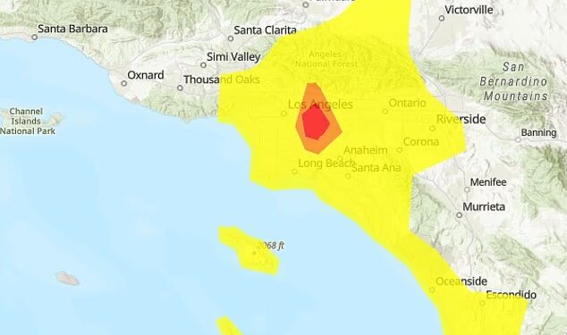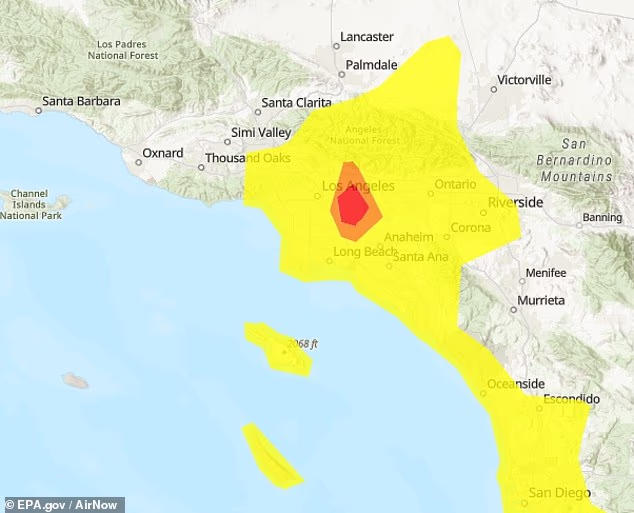 The EPA’s air quality monitors have warned that the air over Los Angeles has entered ‘unhealthy’ levels on Wednesday