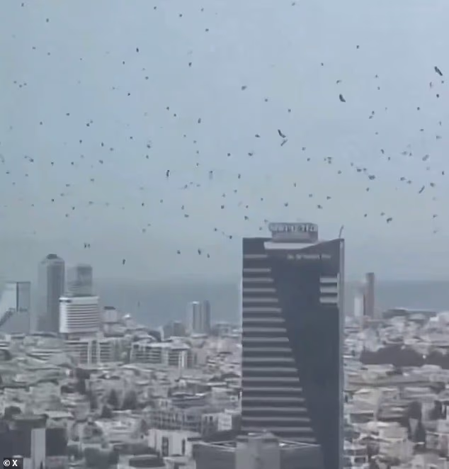 Thousands of crows were filmed circling high-rise buildings, including the iconic Azrieli Towers, in dramatic footage that quickly went viral online.