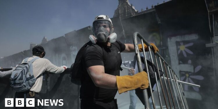 On Saturday demonstrators dismantled parts of a barrier protecting the National Palace, where Sheinbaum lives. Police protecting the compound used tear gas on the crowds.