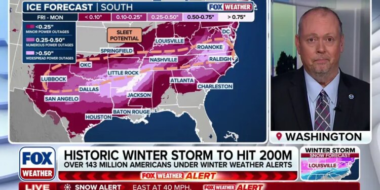 A potentially historic major winter storm stretching more than 2,000 miles across the U.S. is expected to deliver harsh winter weather that will impact more than 235 million Americans across 40 states starting Friday through Monday.