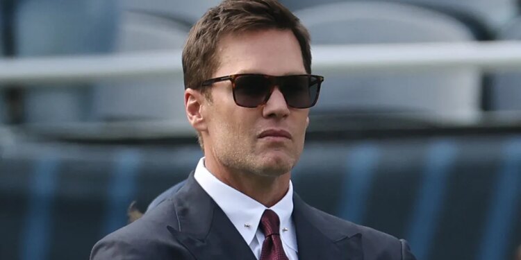 Tom Brady looks on from the field during warm-ups prior to an NFL football game between the New York Giants and the Philadelphia Eagles at Lincoln Financial Field on Oct. 26, 2025 in Philadelphia. (Perry Knotts/Getty Images)