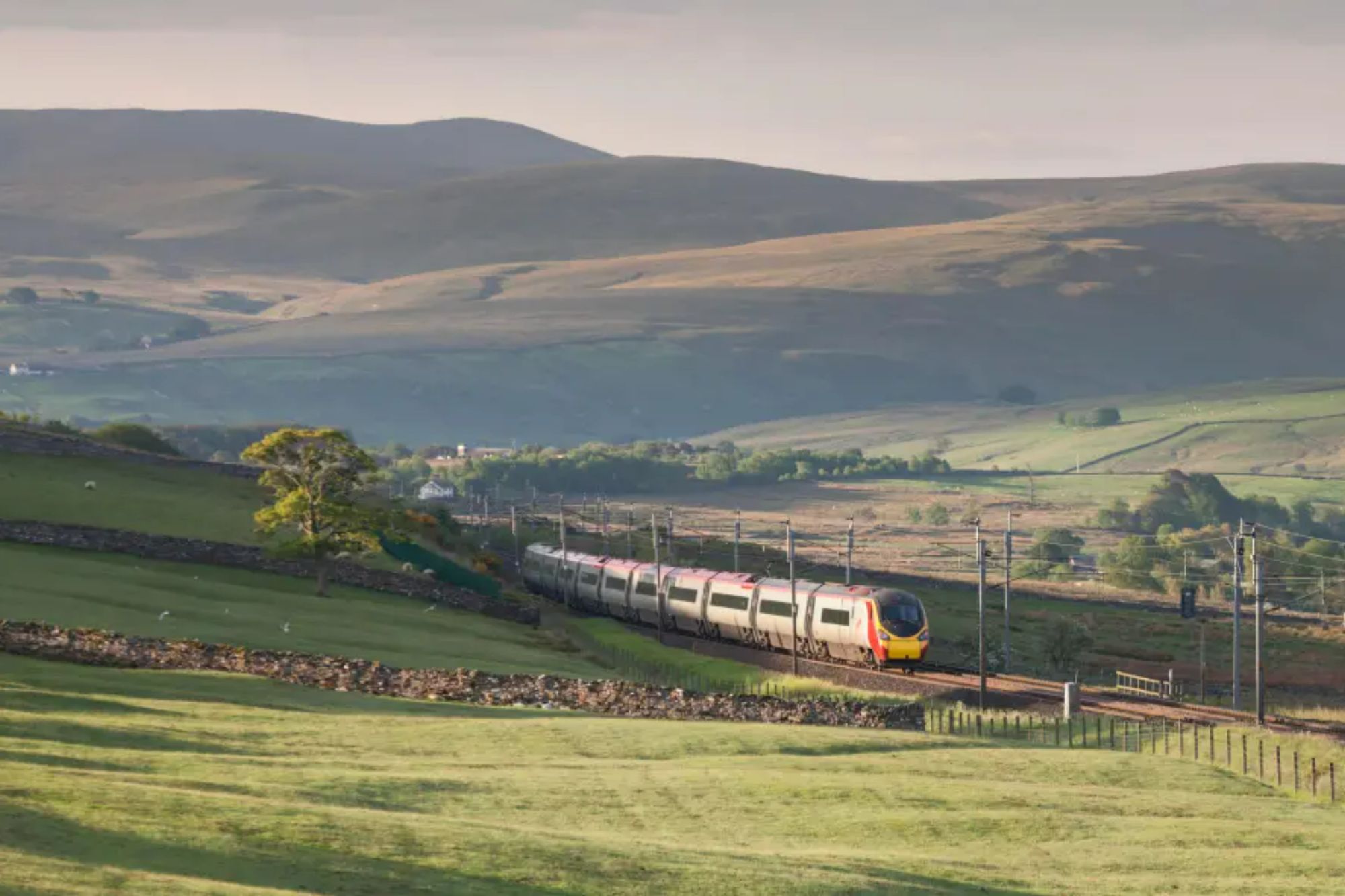 Virgin Trains class 390 Pendolino train passing Shap Wells, Cumbria with the 04:28 Glasgow Central - London Euston.