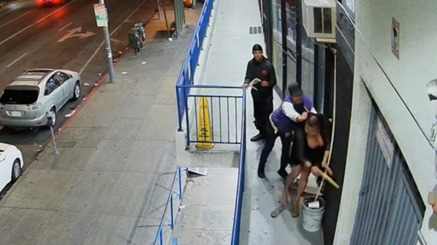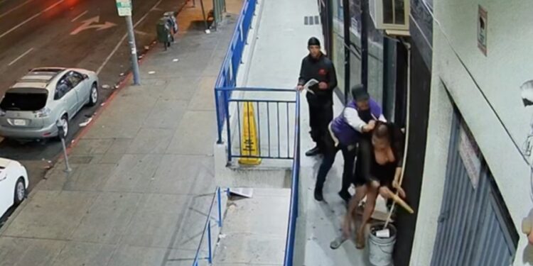 • Surveillance cameras captured repeated and violent assaults on a transgender woman in L.A. beginning on April 8, 2025. (Sabrina de la Peña)