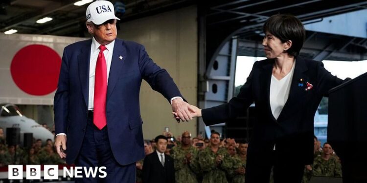 Getty ImagesPraise, Nobel nominations and promises of foreign investment in the US – Japan’s newly-elected Prime Minister Sanae Takaichi rolled out the red carpet for Donald Trump on Tuesday.