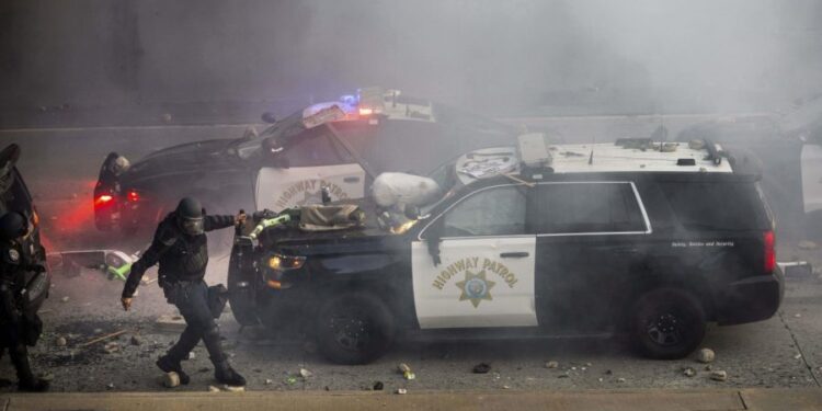 For Trump, California provides a reliable foil as he aggressively pushes a crackdown on immigration. The images of burning cars and masked men waving Mexican flags form the perfect backdrop for the “law and order” message the Trump White House says it will impose on the nation.