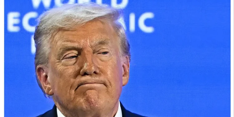 US President Donald Trump looks on during the World Economic Forum (WEF) annual meeting in Davos on January 21, 2026. The World Economic Forum takes place in Davos from January 19 to January 23, 2026. (Photo by Fabrice COFFRINI / AFP via Getty Images)