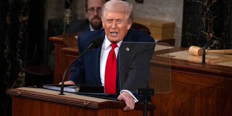 At the State of the Union on Feb. 24, 2026, President Trump unveiled the Rate Payer Protection Pledge aimed at shielding consumers from rising electricity costs tied to AI data centers. (Nathan Posner/Anadolu via Getty Images)