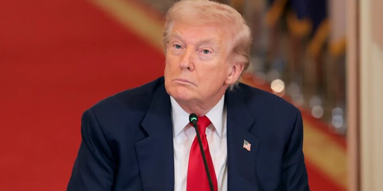 U.S. President Donald Trump looks on during a roundtable discussion on college sports in the East Room of the White House on March 06, 2026 in Washington, DC. (Anna Moneymaker/Getty Images)