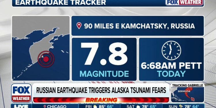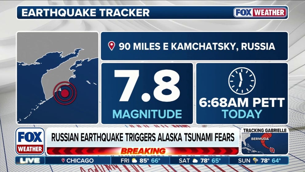 The quake struck just before 11 a.m. Alaska Daylight Time (3 p.m. ET) and was centered about 90 miles east of Petropavlovsk, Kamchatka, according to the U.S. Geological Survey.
