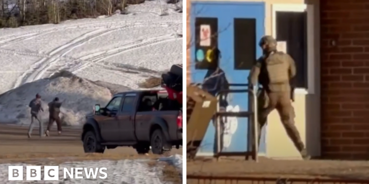 Eight people have been killed and 25 injured in the shootings at a school and home in a rural community in western Canada, police say.