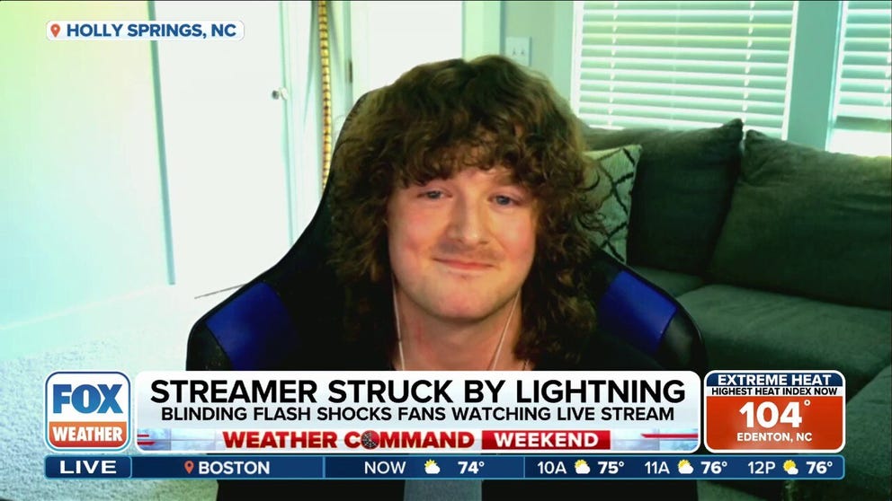 Christian Howard, also known as “chrispymate” on Twitch, spoke to FOX Weather about the moment lightning struck outside his Holly Springs home, shooting a surge of electricity through his computer and into his headphones.
