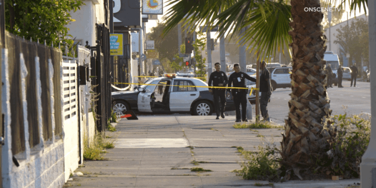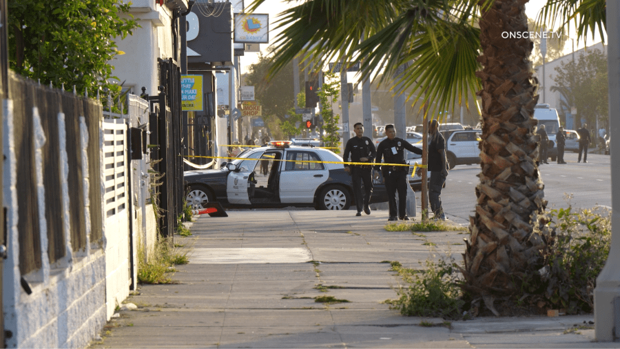 The LAPD said the suspects remain outstanding and officers remain at the scene to conduct their investigation as of 7:10 p.m.