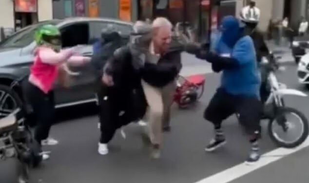 ‘The confrontation began between the victim and one of the minibike riders over possible damage to his vehicle,’ the statement said. ‘Three to four additional minibike riders jumped in and assaulted the motorist.’