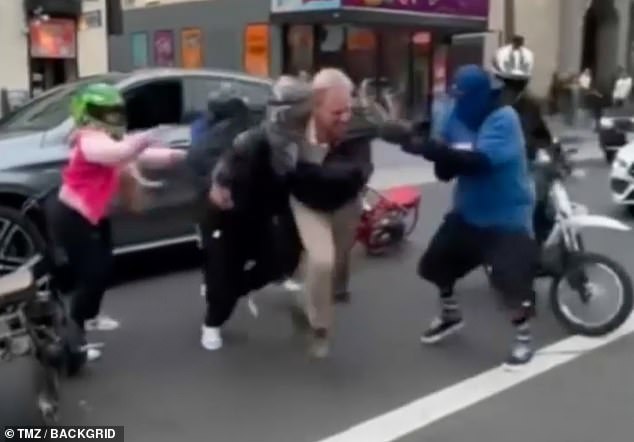 Pictured: The shocking altercation between the gang of mini-bikers and Ian Ziering in Los Angeles