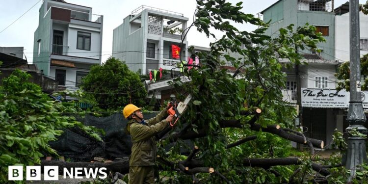 AFP via Getty ImagesTyphoon Kalmaegi, one of the year’s deadliest storms, has headed west to Cambodia and Laos after barreling through central Vietnam on Thursday with winds of up to 92mph (149km/h).