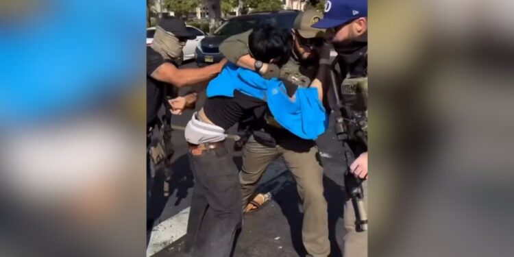 A day after the ordeal, United States Attorney Bill Essayli posted video of the incident to his official government X account and said the 20-year-old was arrested on allegations that he punched “a border patrol agent in the face after he attempted to impede their immigration operation.”