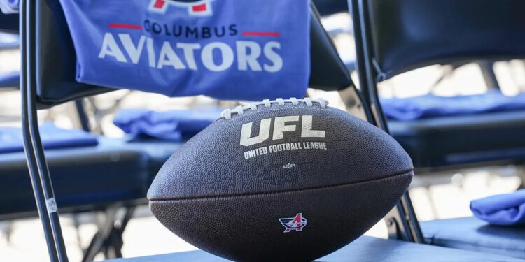 Generic view of a Columbus Aviators banded UFL football before the introductory press conference at Historic Crew Stadium on Oct. 09, 2025 in Columbus, Ohio. (Jason Mowry/UFL/Getty Images)