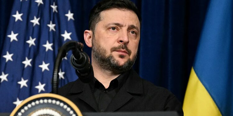 Ukranian President Volodymyr Zelensky speaks during a press conference. (Jim Watson/AFP via Getty Images)
