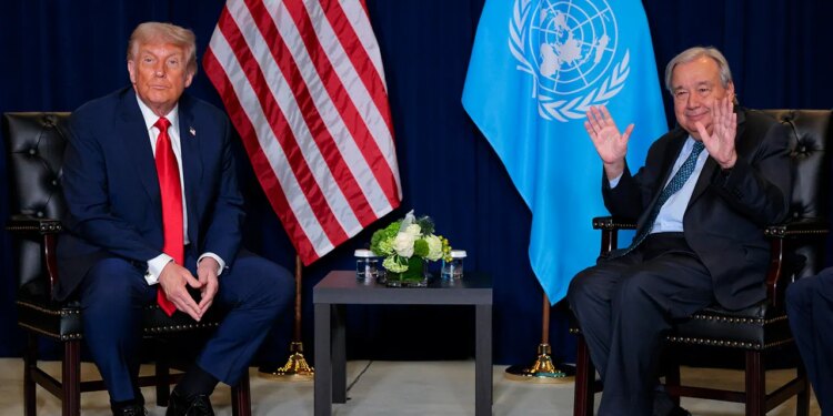 President Donald Trump (L) meets with United Nations Secretary-General António Guterres during the 80th session of the UN’s General Assembly (UNGA) at the United Nations headquarters on September 23, 2025, in New York City. World leaders convened for the 80th Session of UNGA, with this year’s theme for the annual global meeting being “Better together: 80 years and more for peace, development and human rights.” (Chip Somodevilla/Getty Images)