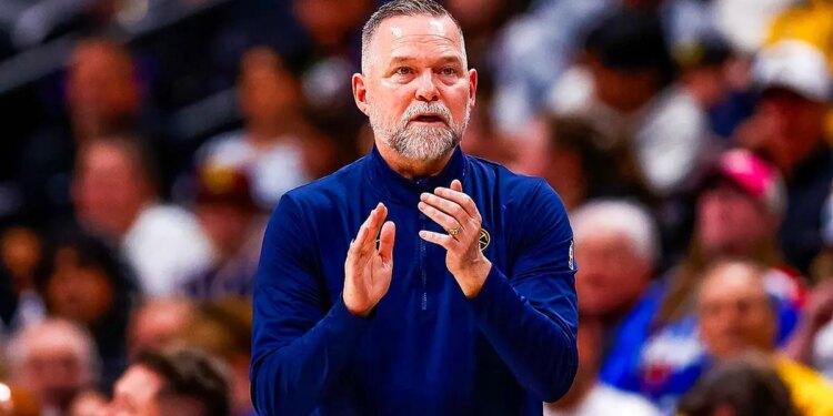 Head Coach Michael Malone claps on the sidelines during the third quarter against the Indiana Pacers at Ball Arena in Denver, Colo., on April 6, 2025. (Justin Edmonds/Getty Images)