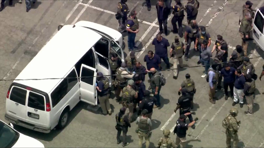 HSI confirmed that it served four federal search warrants at three locations in L.A., alongside partner agencies, including the FBI and Drug Enforcement Administration. KTLA has confirmed the locations were two clothing stores in downtown L.A. and a Home Depot in the Westlake District.