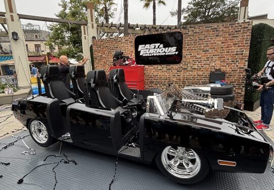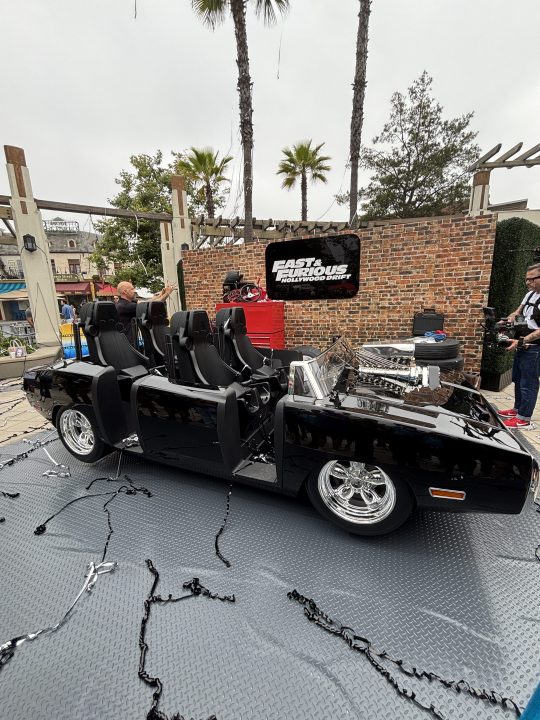 Riders will queue inside a garage-style structure before boarding one of four cars inspired by the franchise’s iconic vehicles. A model of Dominic Toretto’s 1970 Dodge Charger is already on display at the park.