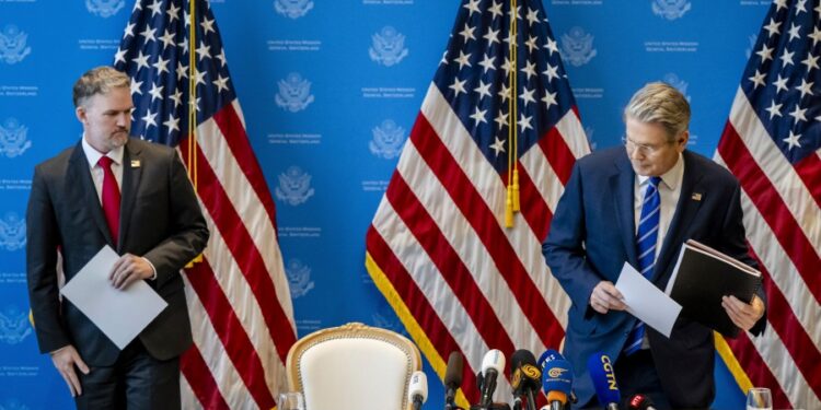 The delegations, escorted around town and guarded by scores of Swiss police, met for at least a dozen hours on both days of the weekend at sun-baked 17th-century villa that serves as the official residence of the Swiss ambassador to the United Nations in Geneva.
