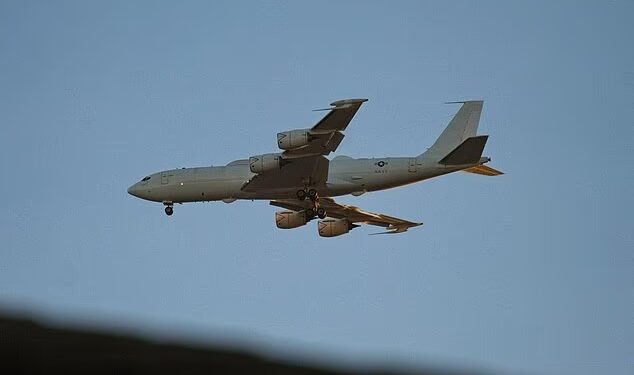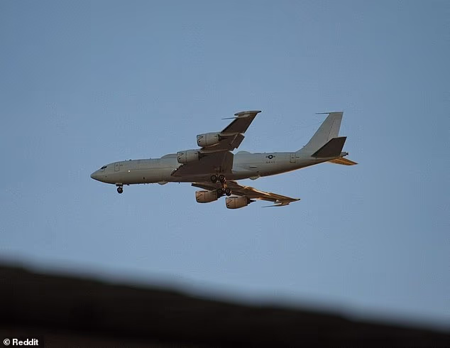 The US Navy’s E-6B Mercury (Pictured) was spotted over Fresno, California on March 8, conducting maneuvers as the fighting in Iran intensify