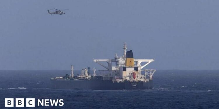 That ship is not on the US Treasury’s list of sanctioned vessels, but the US has said it was carrying “sanctioned PDVSA oil”. In the past five years the ship also sailed under the flags of Greece and Liberia, according to records seen by BBC Verify.