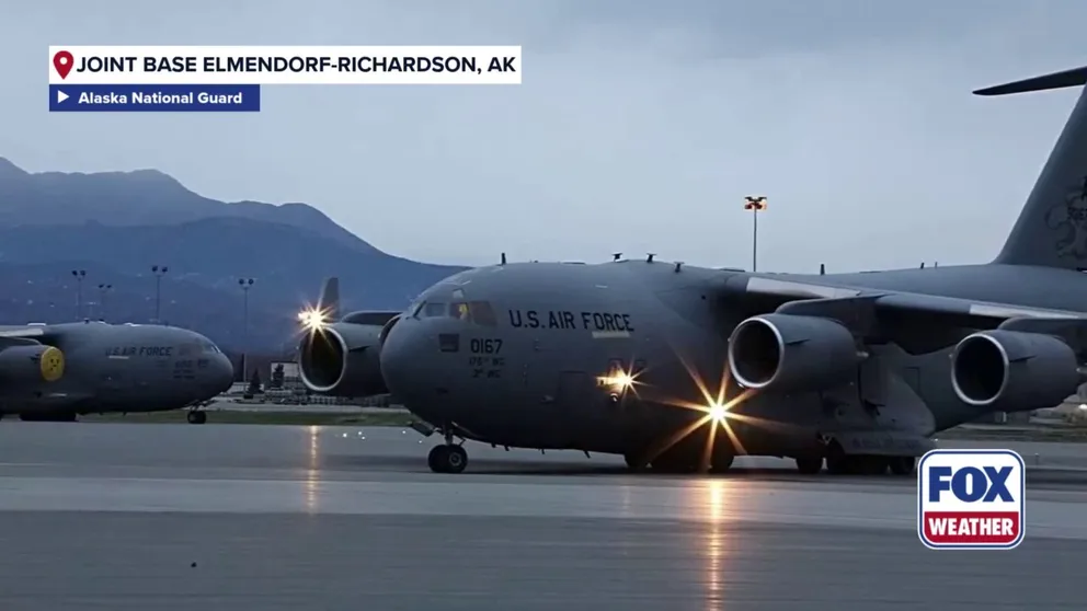 Video and photos released by the Alaska National Guard showed huddled flood victims airlifted on C-17 cargo planes to Anchorage from the regional hub city of Bethel, which has served as a main shelter and staging area for recovery efforts.