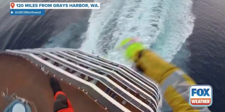According to the U.S. Coast Guard Northwest District Command Center, the team received a medevac request from the Carnival Legend cruise ship located about 120 miles west of Grays Harbor, Washington, on Tuesday night when a 71-year-old woman experienced a cardiac event onboard. Around the same time, an 8.8 magnitude earthquake prompted tsunami alerts for Hawaii, Alaska and the U.S. Pacific coast.