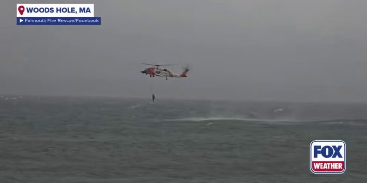 WOODS HOLE, Mass. – A U.S. Coast Guard helicopter was able to save the life of a person who was stranded in the Atlantic off the coast of Massachusetts as a powerful and deadly nor’easter raged across New England on Monday.