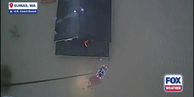 The Coast Guard said crews from Air Station Port Angeles, Washington, and Air Station Astoria, Oregon jumped in to assist Whatcom County Fire District 14 and U.S. Border Patrol, who were unable to conduct the rescue because floodwaters were 8-10 feet deep around the home.