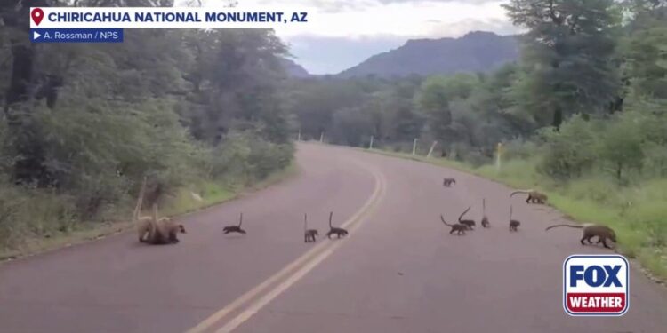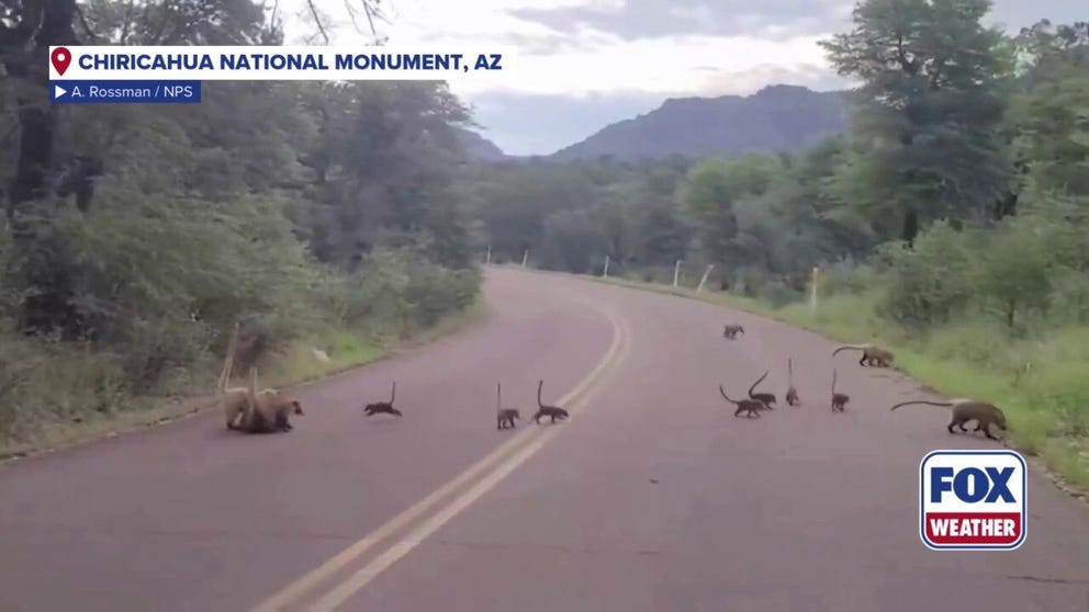 WILCOX, Ariz. – A merry troupe of coatis moms and babies were spotted along a road in Chiricahua National Monument in Arizona.