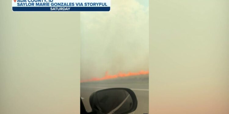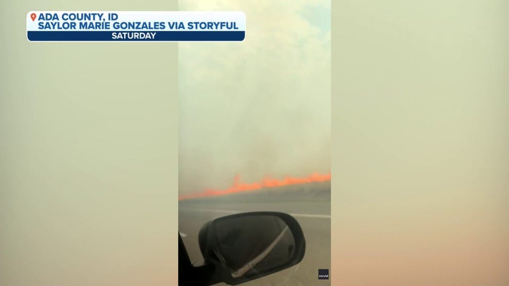 ADA COUNTY, Idaho– A recent wildfire burning along Interstate 84 in western Idaho forced a couple to swerve off-road to avoid the flames and smoke.