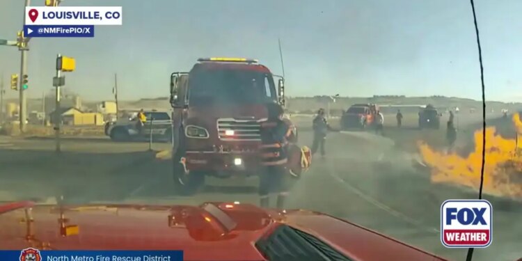 “This dashcam footage from BC62 shows yesterday’s fire in Louisville that started from a spark and quickly spread across a field due to dry conditions and high winds,” North Metro Fire Rescue District said on X.