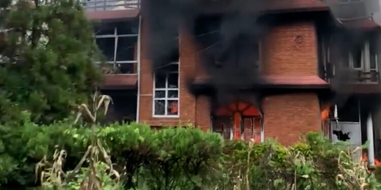 Protesters have stormed the office of Nepal’s largest party and set fire to the residences of prominent politicians.