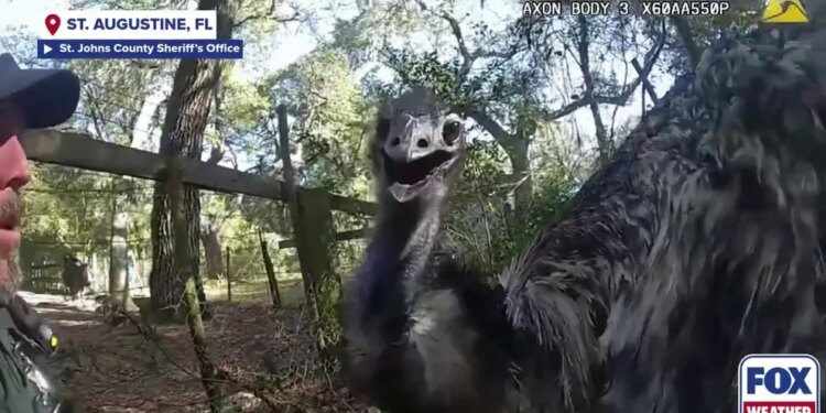 ST. AUGUSTINE, Fla.– An emu put up a fight and ran after a sheriff’s deputy in Florida after escaping its owners last week.