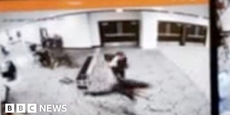 Surveillance video released by Donald Trump shows the suspect running past metal detectors as security agents draw their guns.