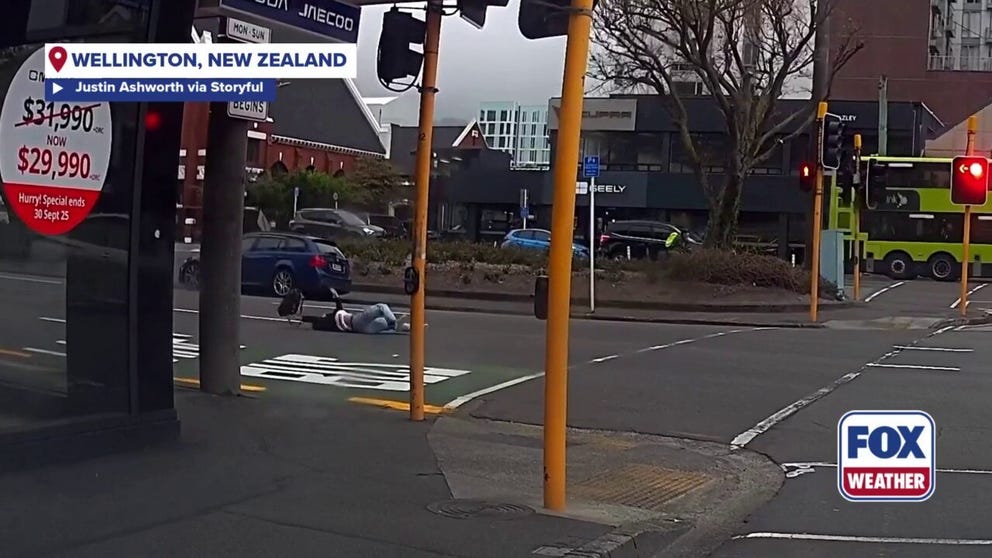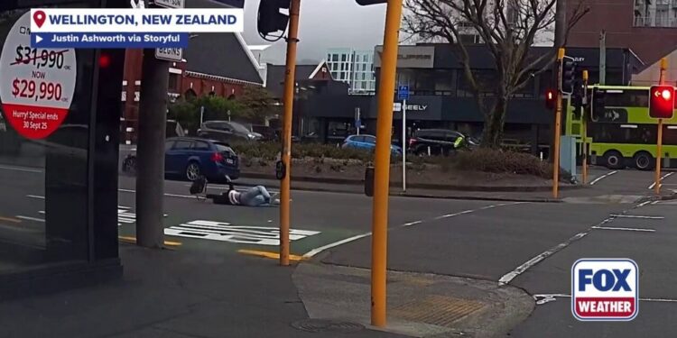 Footage of the incident shows the woman slowly walking toward the crosswalk of an intersection in Wellington, the capital of New Zealand.