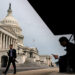 Wind shoves woman into the street in Wellington, New Zealand.