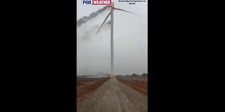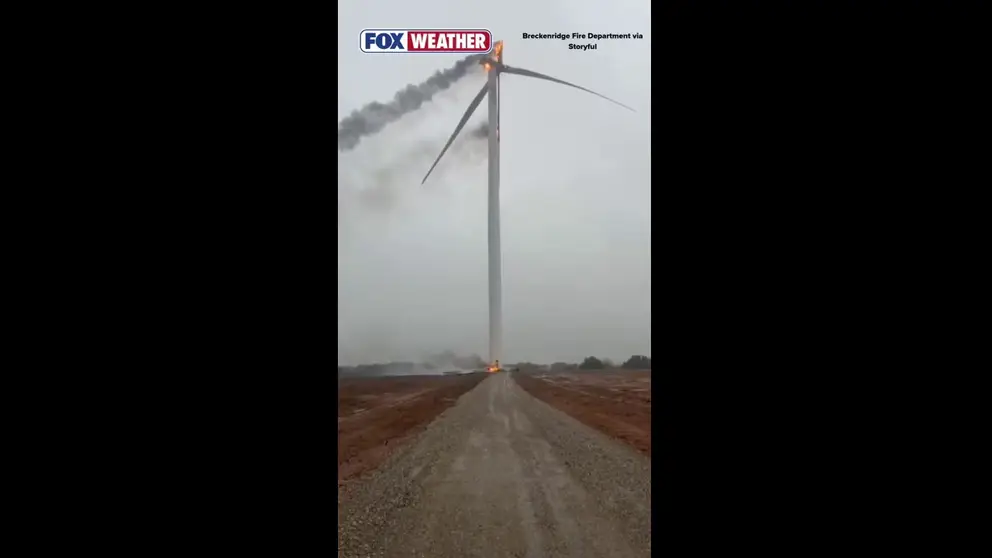 BRECKENRIDGE, Tex. – A wind turbine in Breckenridge, Texas, caught fire on Saturday after being struck by lightning.