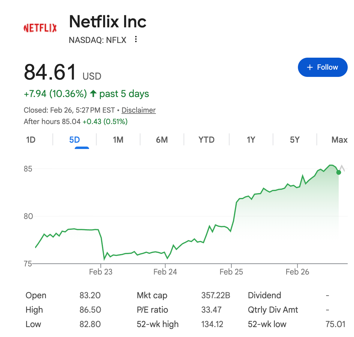 Netflix investors had expressed concern about the size, strategic fit, and regulatory overhang of the Warner Bros. Discovery transaction. Seen by the market as a “deal stock,” as S&P Global’s Melissa Otto previously told Fortune, Netflix stock has actually been trading up since Paramount raised its bid, as investors cheered the prospect of Netflix losing the deal and not saddling itself with legacy Hollywood assets.