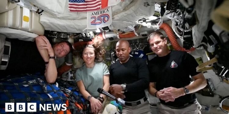 The BBC’s Science Editor Rebecca Morelle has spoken to the four Artemis II astronauts as they journey back home from their dramatic lunar fly-by that saw them travel further from Earth than any other humans.