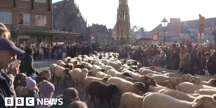 Watch: Hundreds of sheep cross historic German city during annual tradition