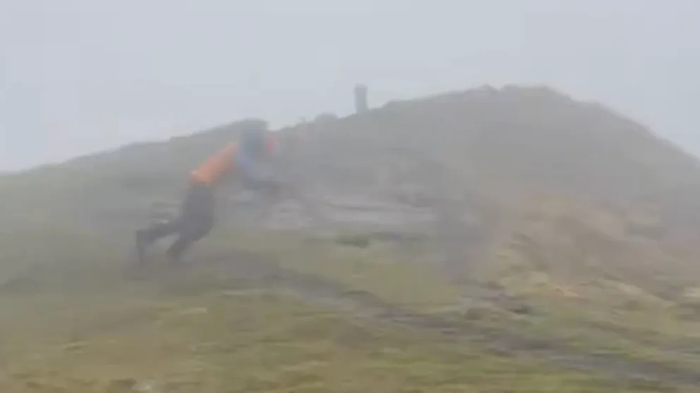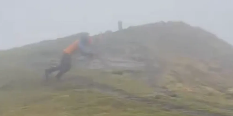 Thomas Soullet decided to try and walk during 115 mph peak winds while atop France’s mile-high Puy de la Tache during Storm Benjamin.