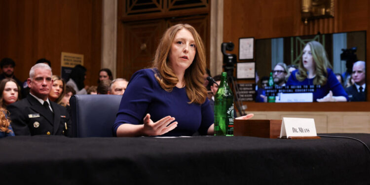 President Donald Trump’s nominee for surgeon general, Dr. Casey Means, faced questions on Wednesday about the president’s recent executive order promoting more domestic production of glyphosate, an ingredient in weedkiller, and how that might conflict with her own beliefs about the potential effects of the chemical.