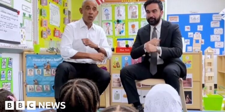 Former US President Barack Obama and New York City mayor Zohran Mamdani met for the first time on Saturday at a child care centre in the Bronx where they sang to preschoolers.