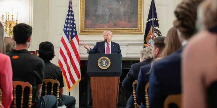 Trump’s remarks came at a White House event honoring some 100 athletes from seven teams that won NCAA championships in 2025.